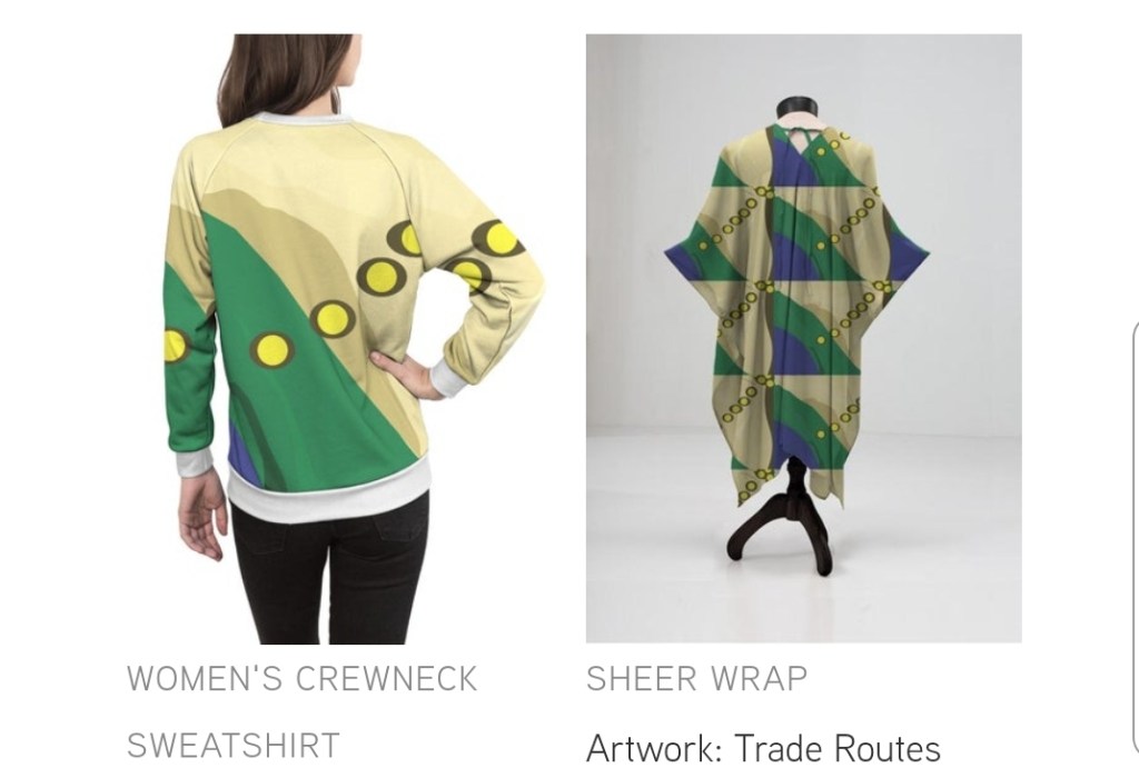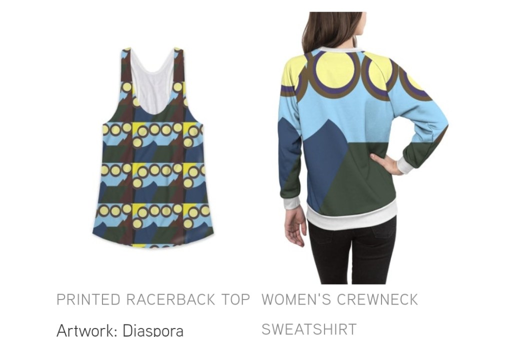 There are three new designs in my Vida collection in time for Juneteenth. Diaspora is the story of people being taken from their homeland to across the sea. The Trade shows a people taken across the desert and through the jungle to the sea. The Underground shines the light on the journey to freedom during dark nights.