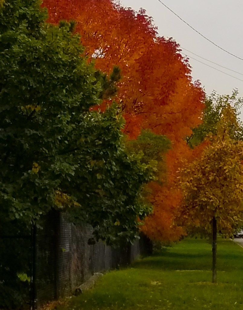 All of the leaves go through a process that makes them fall off the tree. But they don’t all fall at the same time.